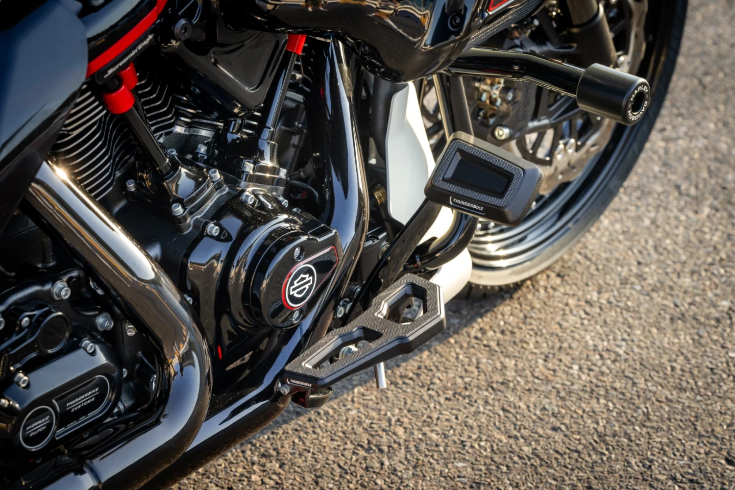 Das Thunderbike Brake-Peg Satin ergänzt die Mini Floorboards perfekt und fügt sich harmonisch in die Linienführung des Bikes ein. Auch ohne Floorboards überzeugt es als stilvoller Eyecatcher mit edlem Satin-Finish.