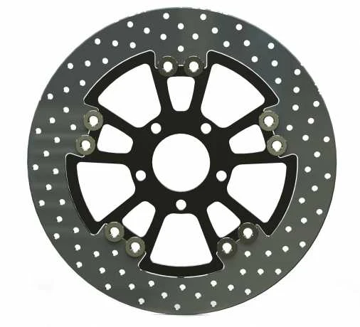 Unsere schwimmend gelagerte Bremsscheibe sorgt für bessere Verzögerung bei großen Raddurchmessern. Bremsring und Nabe sind durch Buchsen flexibel miteinander verbunden und so kann sich der Reibring ausdehnen, ohne dass er seine Verformung an den Rest der Scheibe weitergibt. Schwimmend gelagerte Bremsscheiben können eine höhere Geräuschentwicklung als starre Bremsscheiben herbeiführen. Dies ist kein Reklamationsgrund. Wir empfehlen daher zu unseren gefloateten Bremsscheiben die Bremsbeläge Ferodo EcoFriction (#584-2079EF, für Serienzange) und TRW SDP978 (#1721-0679, für Brembo-Radialzange).