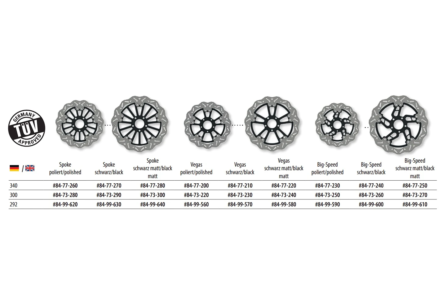 Passend für Harley-Davidson Modelle mit Thunderbike 340mm Bremssatteladapter (siehe Zubehör)