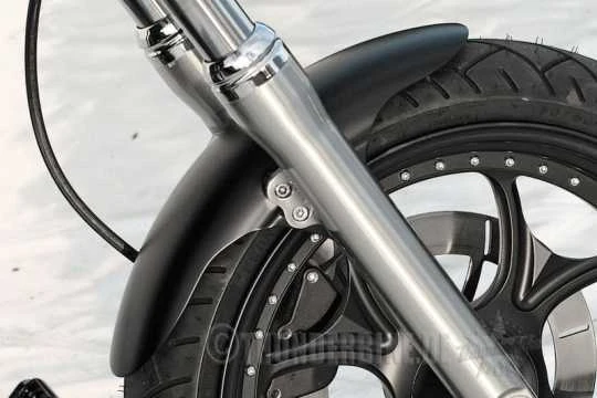 Spezielles Vorderradschutzblech aus GFK für 130/60-18″ Dyna (nicht FXDF) und V-Rod Umbauten.