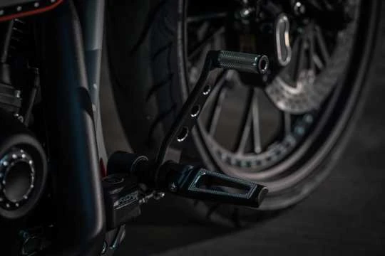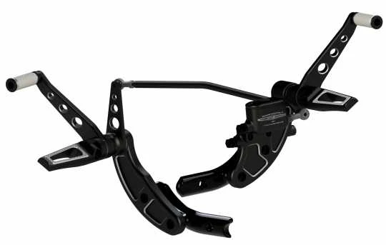 Original Thunderbike Custom Fussrastenanlage für Harley-Davidson Softail Modelle ab 2018 (Milwaukee-Eight). Mit der Einführung der sportlichen Grand Prix Modelle haben wir unserer bekannten V-Tech Rastenanlage ein cooles Contrast-Cut Finish verpasst.