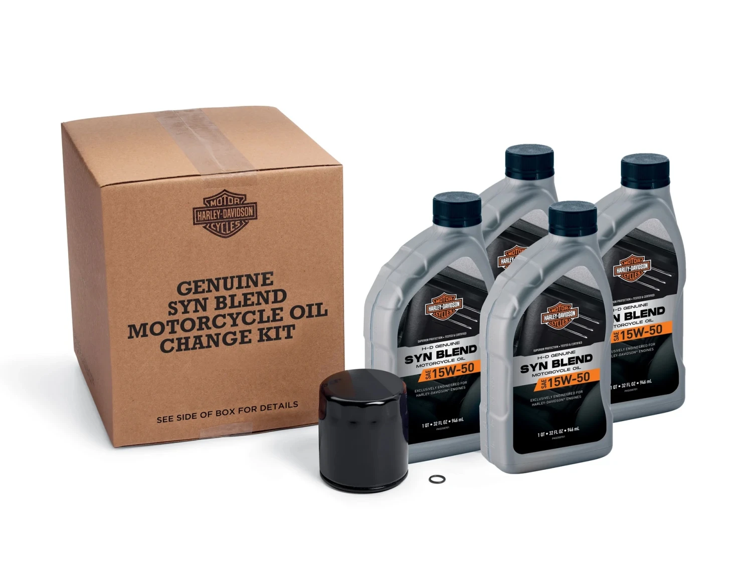 Dieses Ölwechsel Kit bietet alles, was man für einen kompletten Ölwechsel an Harley-Davidson Modellen benötigen. Das Kit wird von uns zusammengestellt und entspricht dem in den USA erhältlichen Harley-Davidson Oil Change Kit 62600111, nur kommen die europäischen Literflaschen zum Einsatz. Jedes Teil dieses Kits kommt in gewohnter Harley-Davidson Qualität.