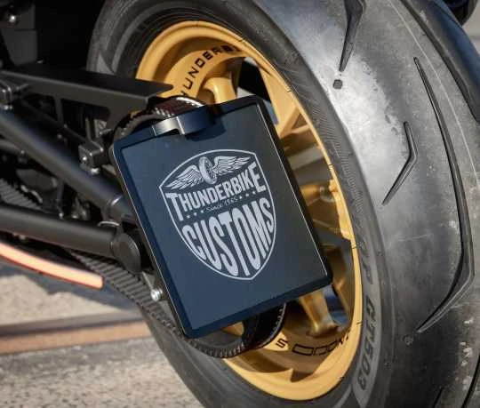 Der Thunderbike Kennzeichenträger Inside Plate wird aus hochwertigem Billet Aluminium hier bei Thunderbike gefräst und passt sowohl an unsere seitlichen Kennzeichenhalter, als auch universell an den Fender. Mit Kabelinnenführung und Nummernschildeinschub (unsichtbare Verschraubung) ist eine absolut cleane Optik garantiert.