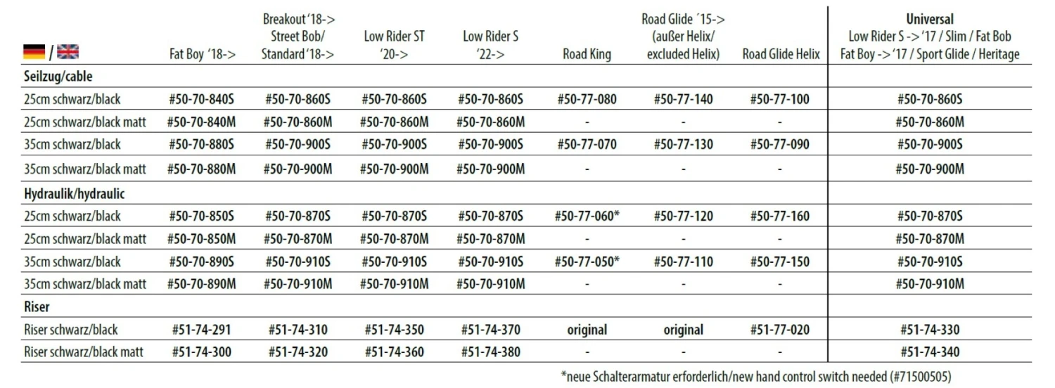 Passend für Harley-Davidson Softail Modelle bis´24(außer FatBoy) mit Hydraulik Kupplung & Atlas Riser (siehe Zubehör).