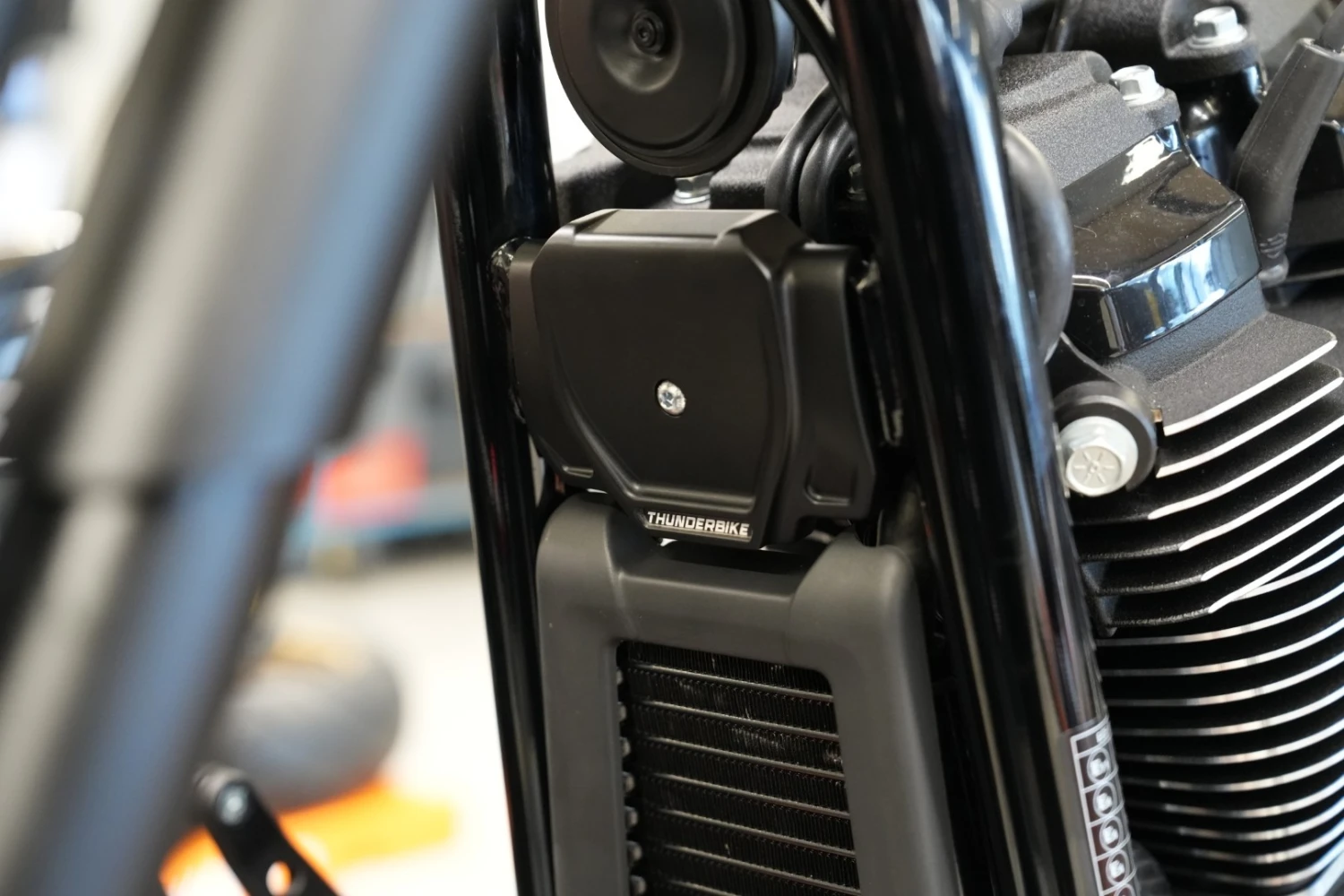Das Thunderbike Rahmencover ermöglicht einen cleanen Look deines Bikes, indem die vordere Motorbefestigung verdeckt wird.