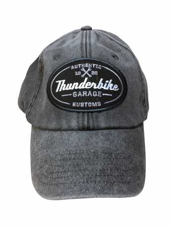 Die brandneue Thunderbike Baseball Cap im Vintage Design mit „Authentic Garage“ Patch ist hinten verstellbar.