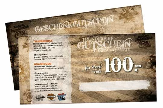 - Der Gutschein kann außerdem im Thunderbike Roadhouse eingelöst werden