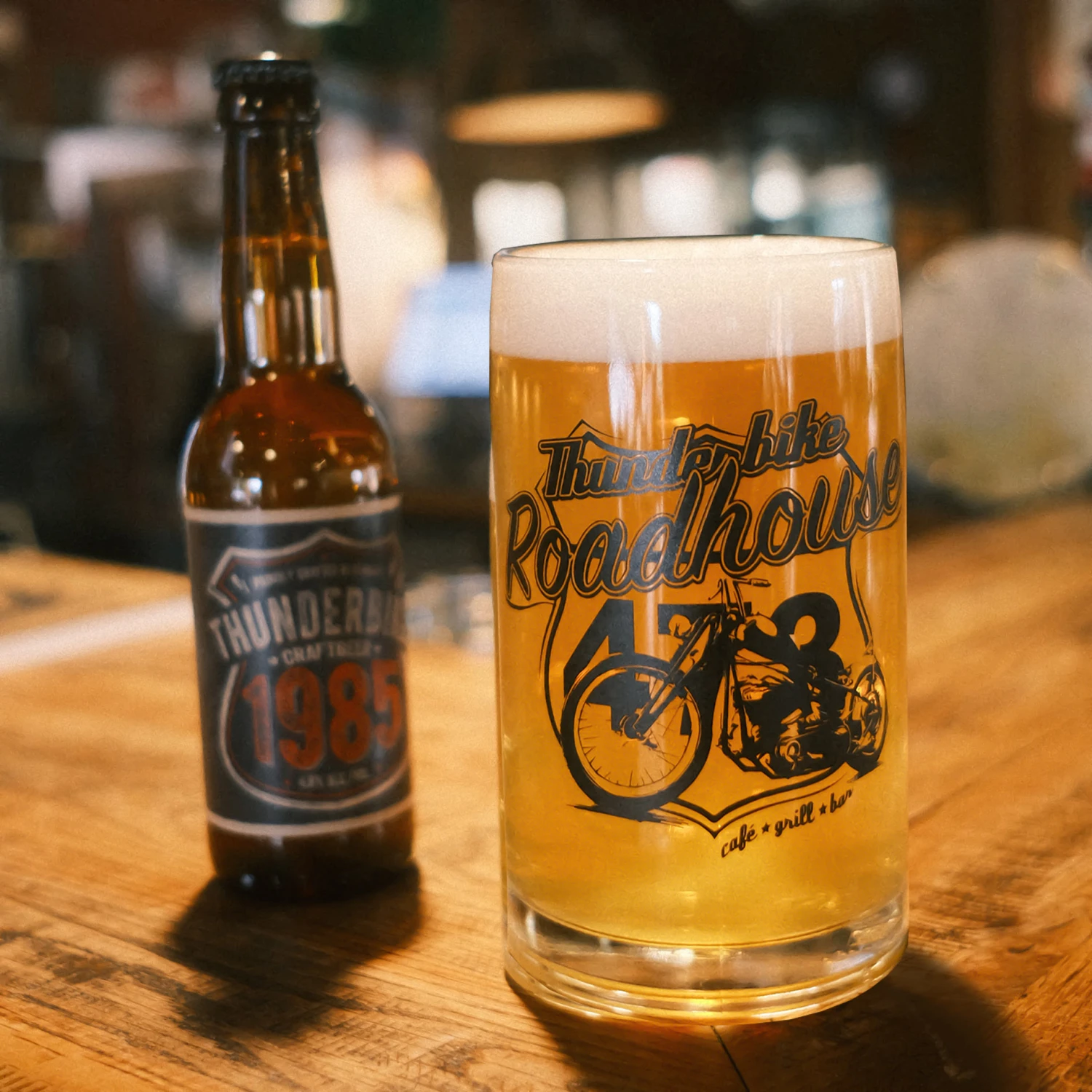 Mit unserem neuen Glas-Krug lässt sich das Bier wie im Thunderbike Roadhouse genießen.