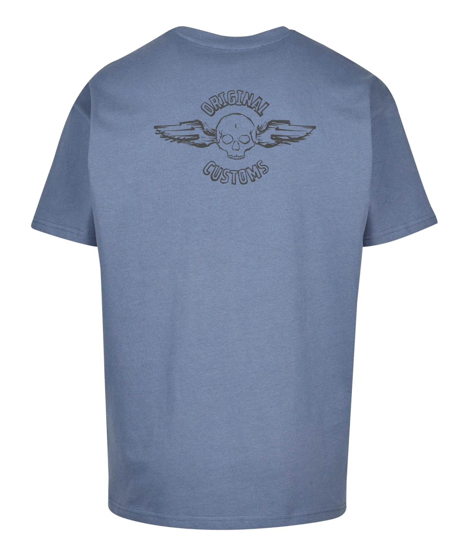 - Motiv: Sketch Skull Druck vorne und Winged Skull hinten