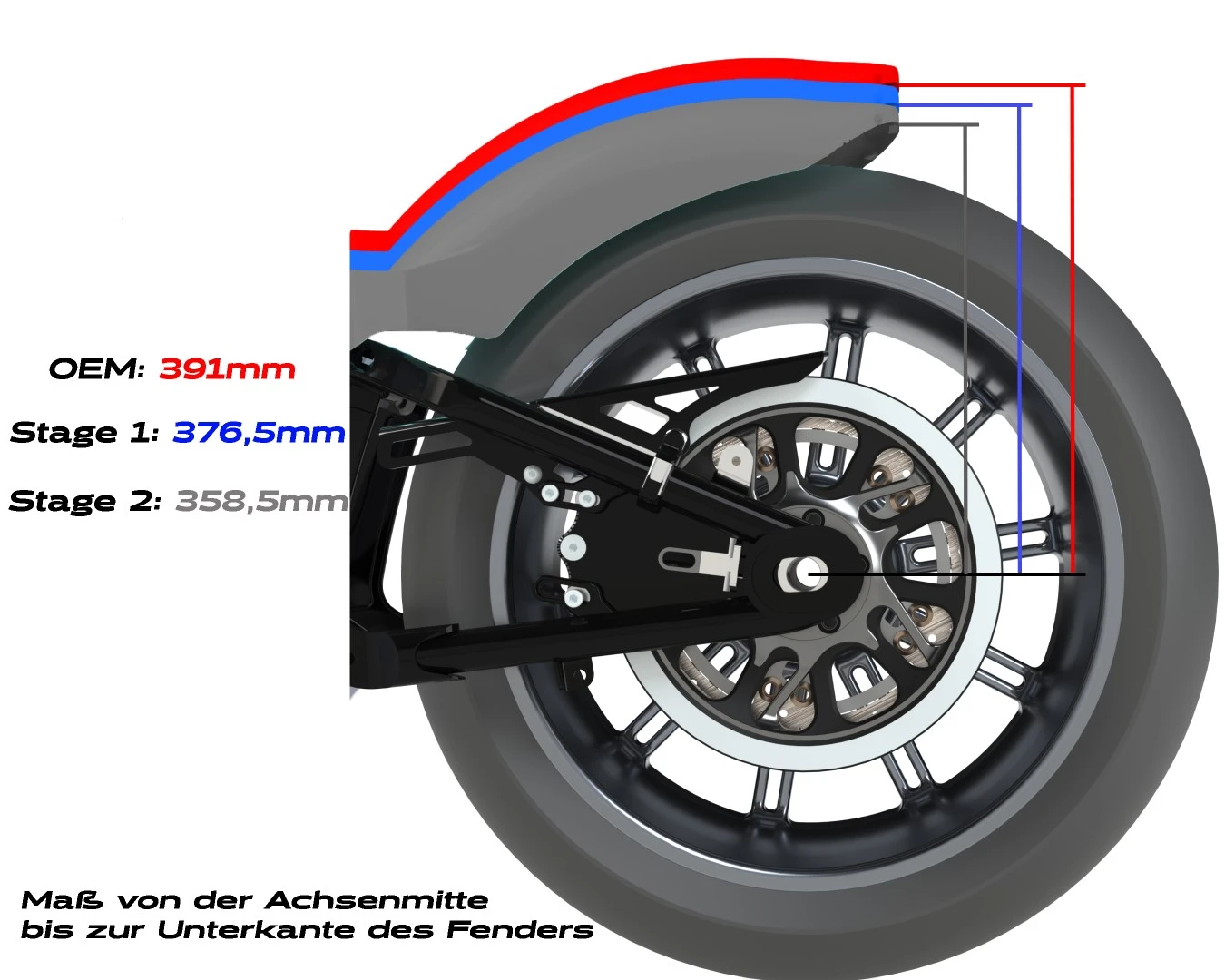 Das Thunderbike Tieferlegungskit Stage 2 legt dein Bike um 30mm tiefer. Diesen Umbau führst du selbst durch.
